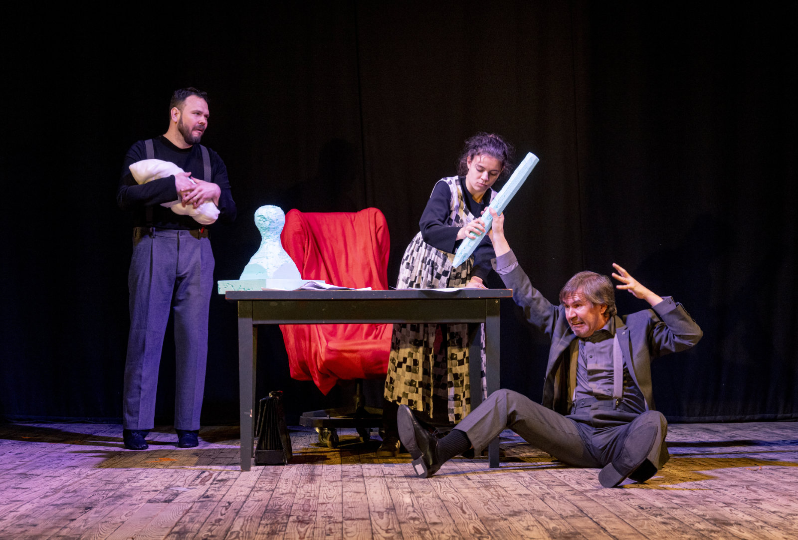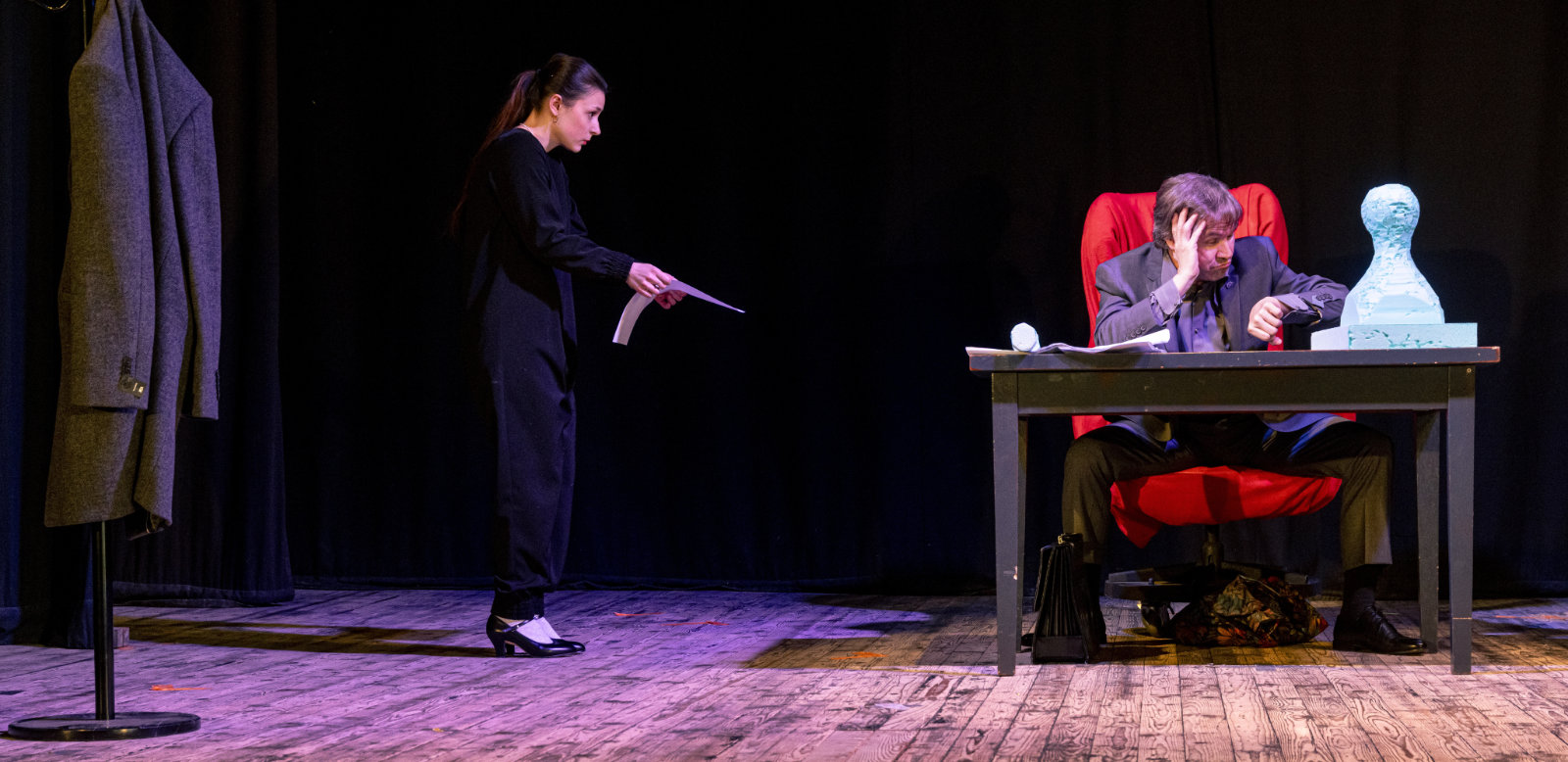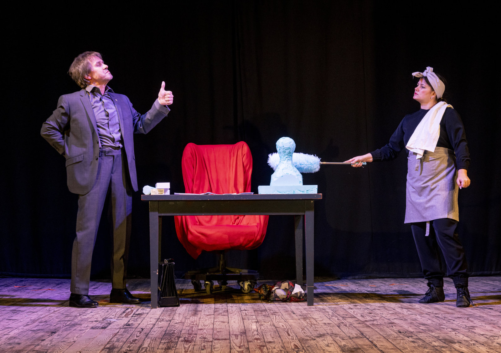 Mestské divadlo Banská Bystrica o. z. prináša do pestrého repertoáru svojej činnosti prvú autorskú divadelnú inscenáciu bez slov – neverbálnu činohru s prvkami pantomímy a grotesky, ktorú spoločnou autorskou tvorbou vytvorili absolventi slovenských umeleckých škôl. So živou hudbou - autorským hudobným sprievodom pedagóga a študentov Akadémie umení v Banskej Bystrici - ju uvádzajú ako jedinečné a v slovenských pomeroch výnimočné, pôvodné, kolektívne javiskové umelecké dielo.