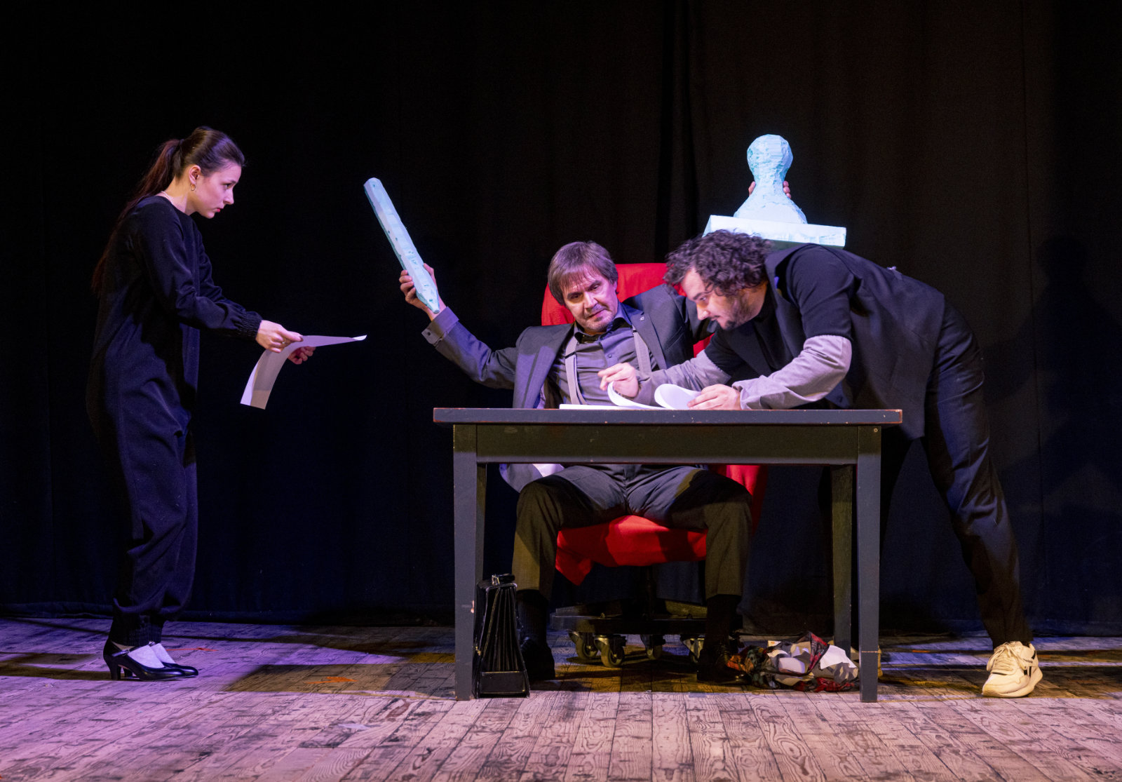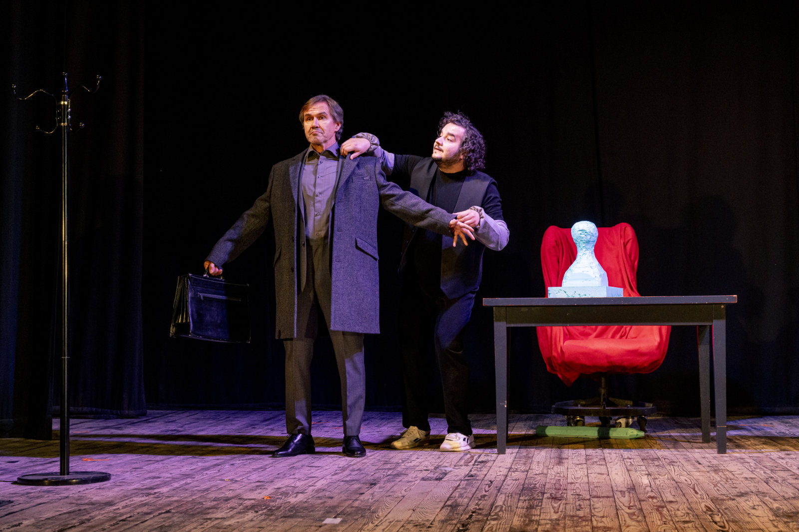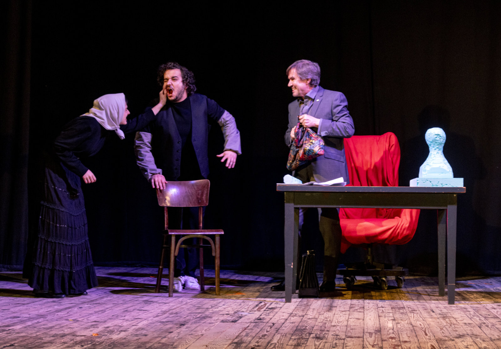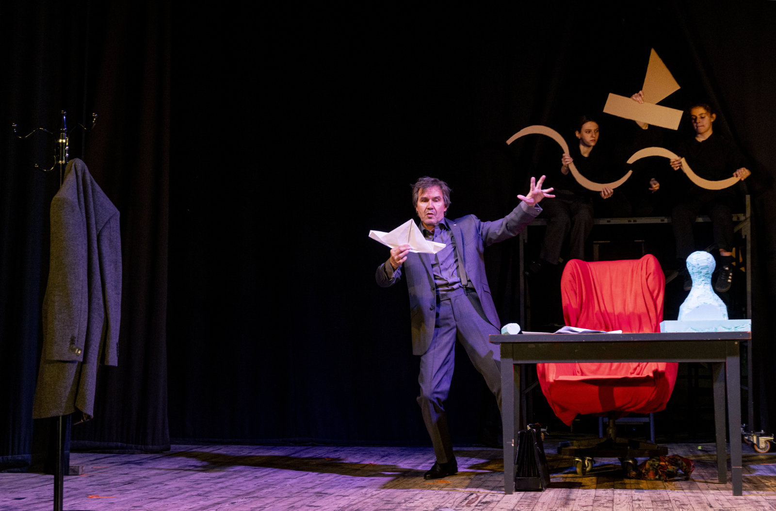 Mestské divadlo Banská Bystrica o. z. prináša do pestrého repertoáru svojej činnosti prvú autorskú divadelnú inscenáciu bez slov – neverbálnu činohru s prvkami pantomímy a grotesky, ktorú spoločnou autorskou tvorbou vytvorili absolventi slovenských umeleckých škôl. So živou hudbou - autorským hudobným sprievodom pedagóga a študentov Akadémie umení v Banskej Bystrici - ju uvádzajú ako jedinečné a v slovenských pomeroch výnimočné, pôvodné, kolektívne javiskové umelecké dielo.